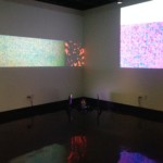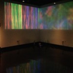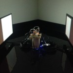 PiAv is an audio-visual installation that explores sonic and visual improvisation by exploiting glitches, loss of network connections, and random abnormalities created through pushing the limits of a network of microcomputers. A closed network of ten microcomputers creates a cross-pollinated audio-visual system where each node (one microcomputer) of sound or video is influenced by its’ connection or lack of connection to the other nodes in the network. There are eight sound nodes and two video nodes. In addition to being influenced by stochastic processes created from its’ networked status, each node is independently driven by its’ own set of stochastic instructions. The combination of influences creates an ever-changing audio-visual experience. In terms of sonic and visual interaction, combinations of pitch-clusters and samples from each sound node influence the two video nodes. The video nodes generate abstract visual images created from computer code inspired by traditional analog video feedback techniques. In return, the color spectra and motion velocity within the visual images influence the sound processing on each of the eight sound nodes creating a meta-feedback system. The total audio-visual system cycles through a series of meta-scenes that vary from drone-like, contemplative clusters to riotous bursts of sound and energy. The meta-scenes provide a foundation for the basic states of sounds and and images while the limitations of each micro-computer’s processor and it’s state of connection to the network allow for the unexpected glitch.